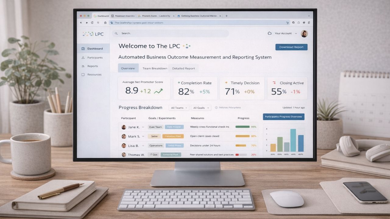 This system gives you a real-time way to measure and report on business outcome progress without data gathering overhead even when the results aren’t what participants originally expected.